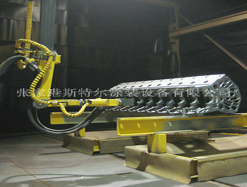 斯特爾公司研發的數控全自動噴砂房能夠大大的有效降低運營人員費用和升高質量并且能夠在質量上優與手工操作,我公司在滿足生產質量、生產效率、運行成本的理念下研發機器人噴砂(丸)房。