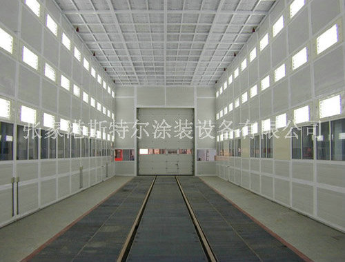 (6)環氧瀝青漆室用到上進風、下排風系統的干試環氧瀝青漆室。