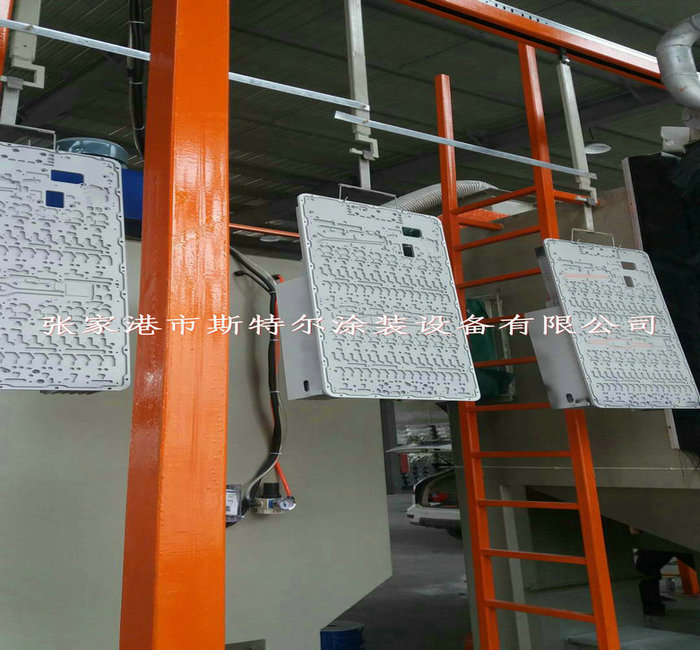 江蘇某企業在我司定制的懸掛鏈自動噴砂機具有以下幾個特點廠品:重要是華為(wei)75G 移動(dong)信號塔鋁殼(ke)板。